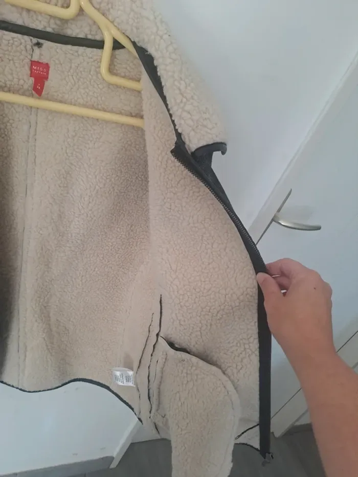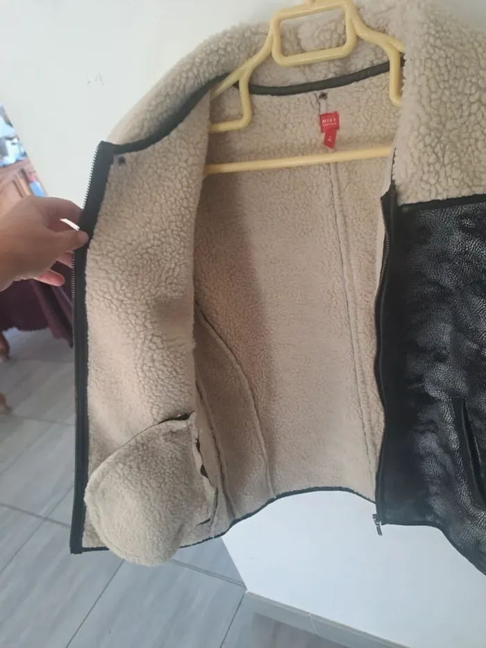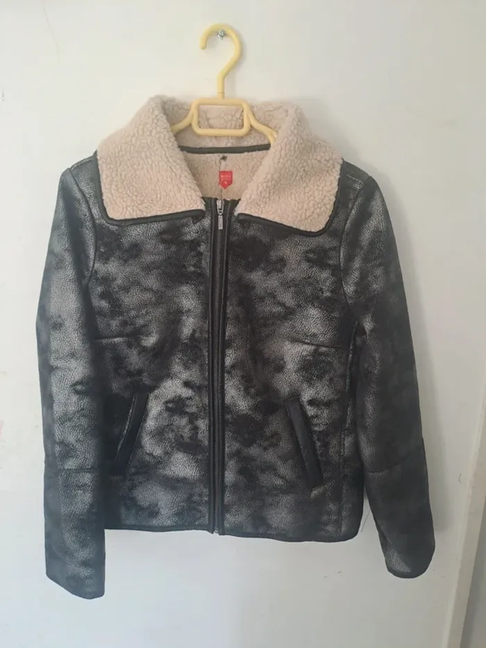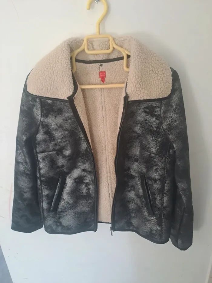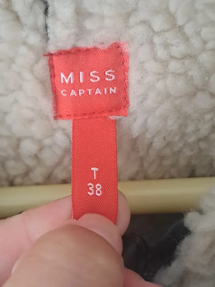 Manteau manches longues Attache avec fermeture éclair Col avec boutons pression pouvant s'enlever Effet "moumoute" polaire à l'intérieur Couleur noir et argenté Taille 38 Marque Miss Captain #elodie2429femmehaut #elodie2429femmeveste #elodie2429femmetaille38