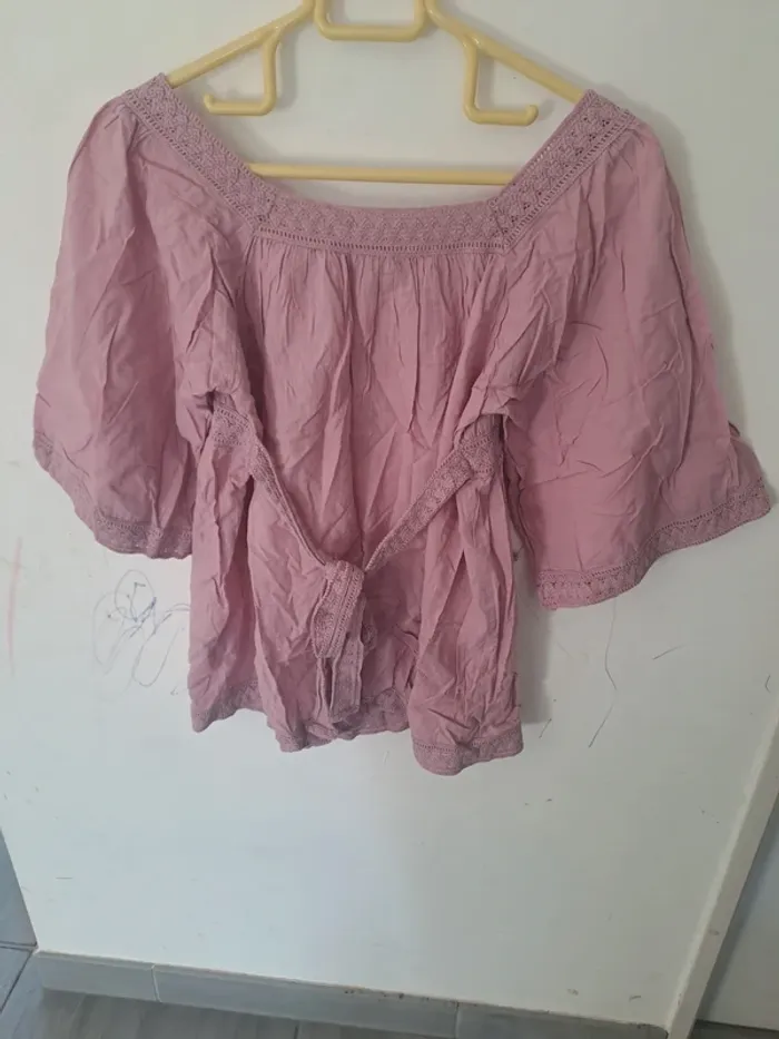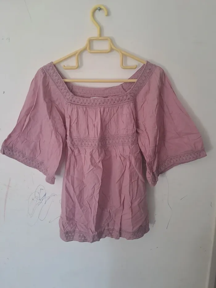 Blouse avec manches Col carré Nœud à l'arrière Couleur lilas Taille 34 Marque Pimkie #elodie2429femmehaut #elodie2429femmepimkie #elodie2429femmetaille34