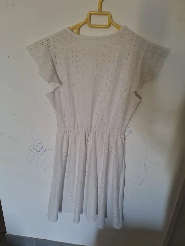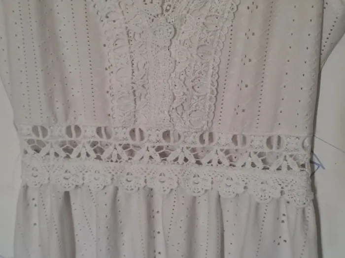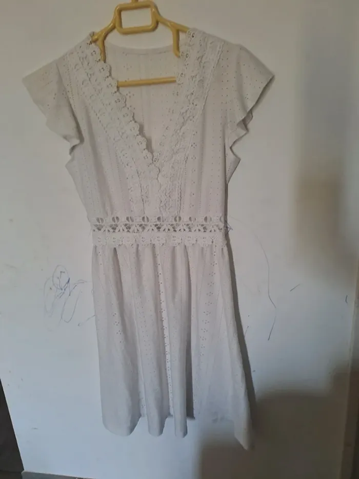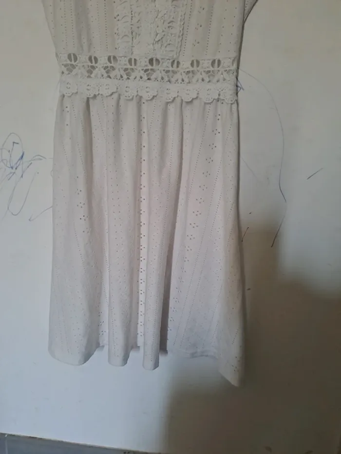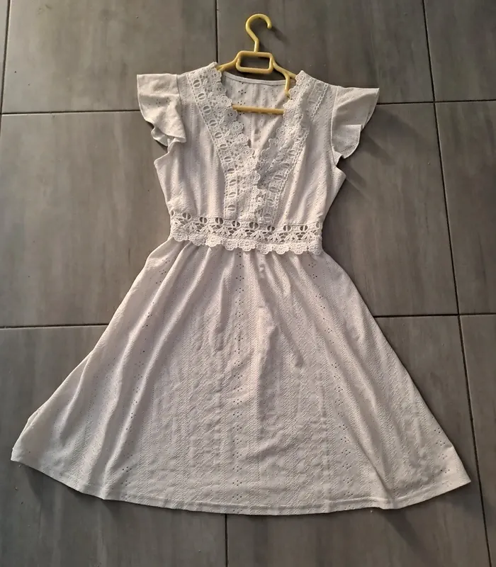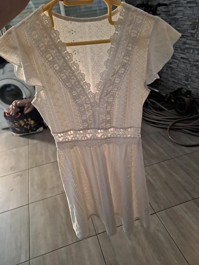 Très belle robe Manches courtes Avec broderie , ouverture laissant apparaître la peau à plusieurs endroit Ajouré et transparente Couleur blanc Taille S (36) Pas d'étiquette de marque #elodie2429robe #elodie2429femmetaille36
