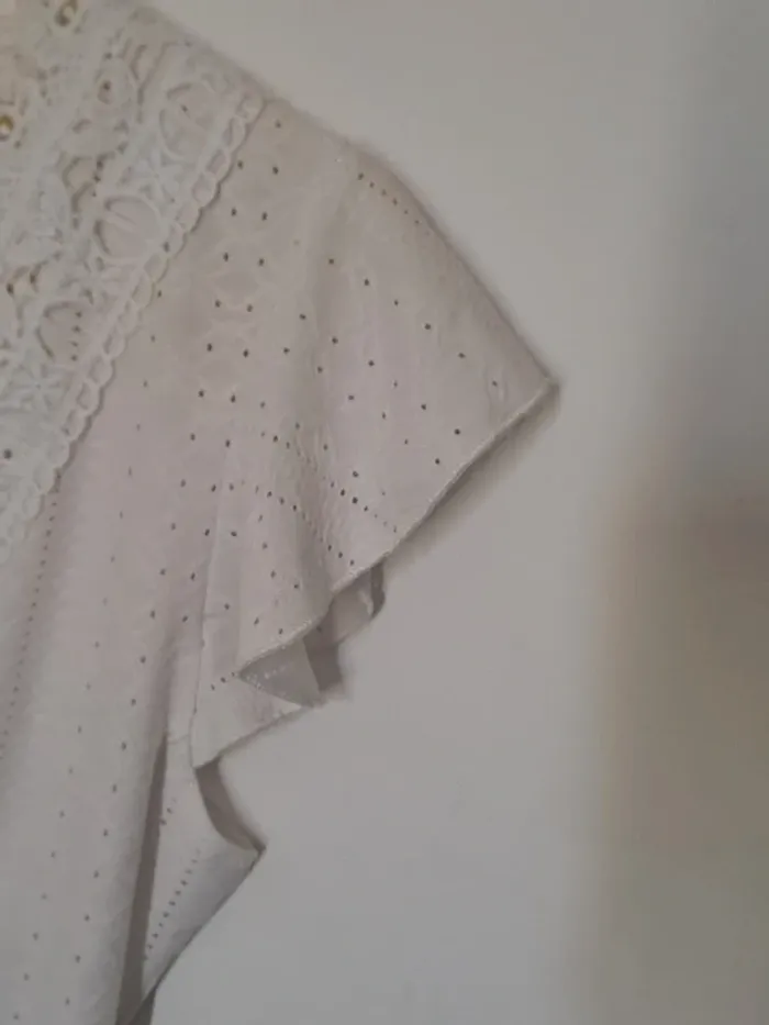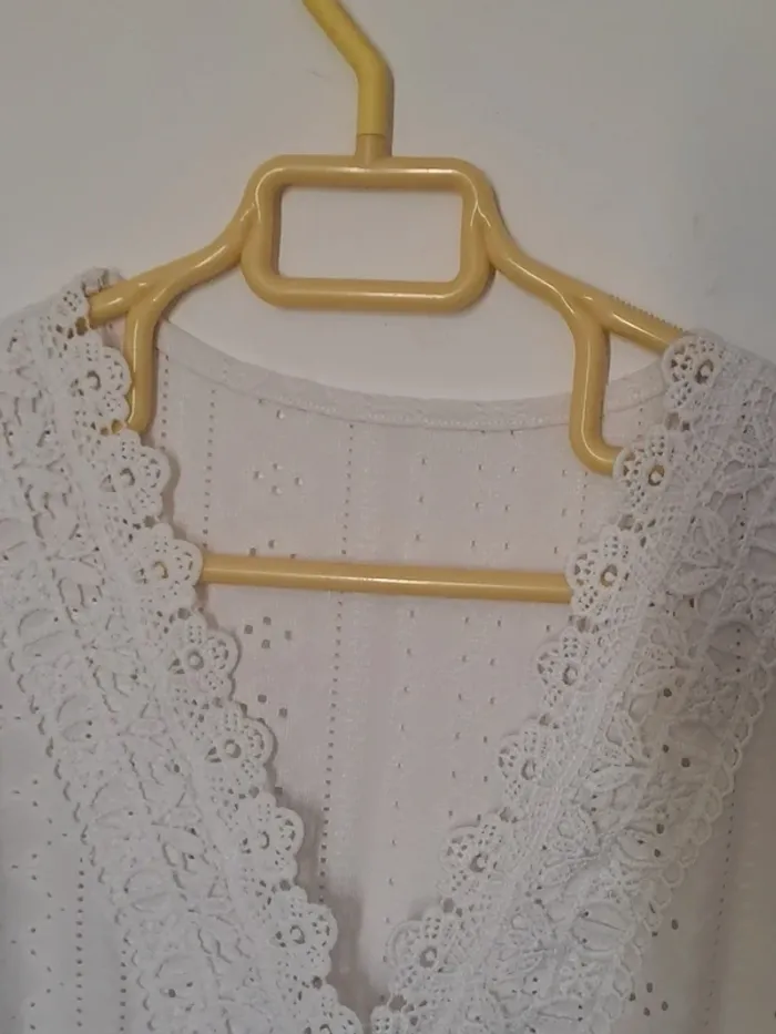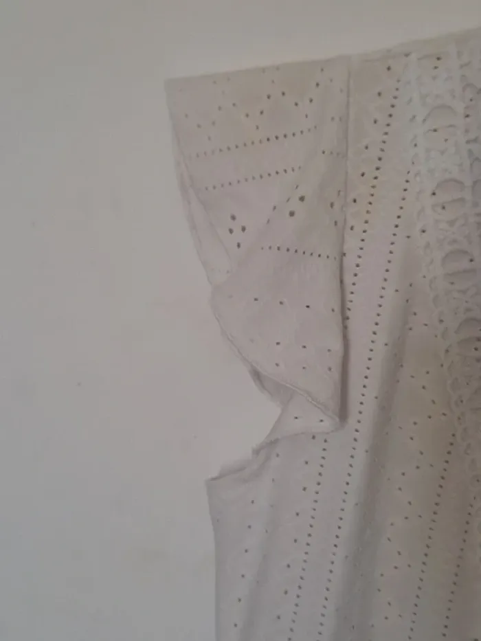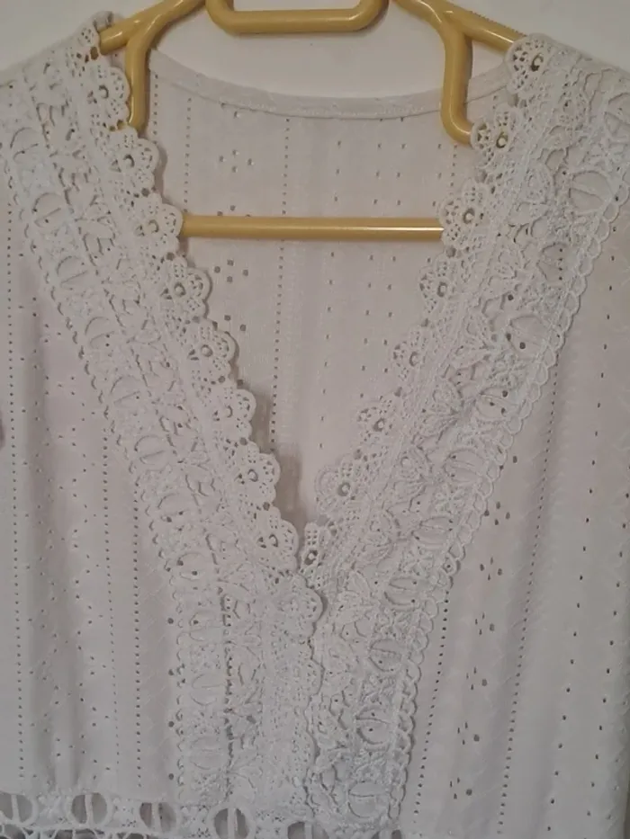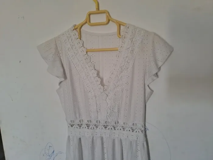Très belle robe Manches courtes Avec broderie , ouverture laissant apparaître la peau à plusieurs endroit Ajouré et transparente Couleur blanc Taille S (36) Pas d'étiquette de marque #elodie2429robe #elodie2429femmetaille36