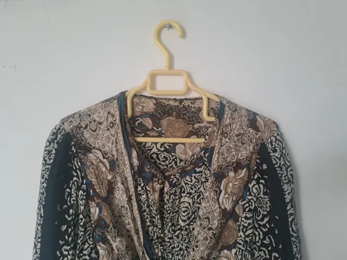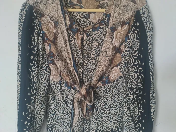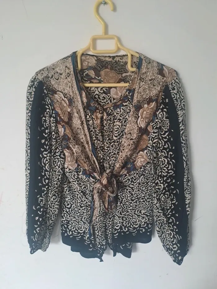 Blouse / Chemise vintage Manches longues Attache avec boutons et pouvant se nouer ou être laissé détaché Multicolore Pas d'étiquette de taille Pas d'étiquette de marque #elodie2429femmehaut #elodie2429femmechemise #elodie2429femmetaille38 #elodie2429femmetaille40 #elodie2429femmetaille42 #elodie2429vintage