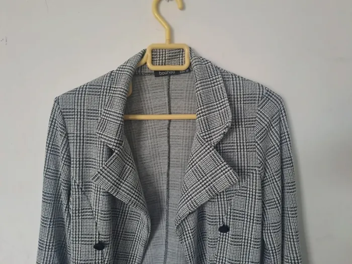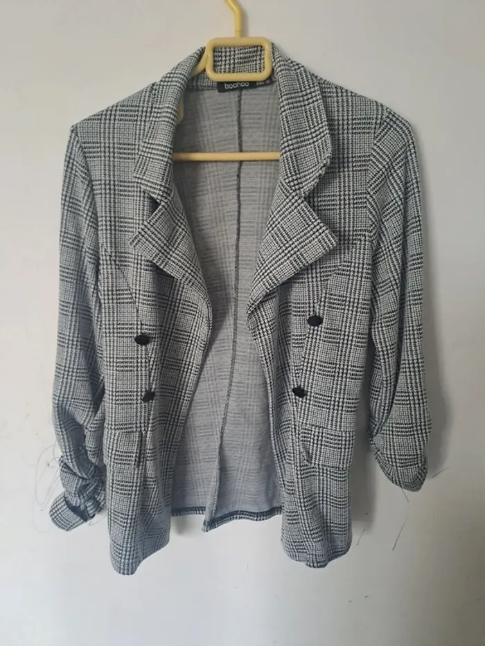 Blazer original du à ses manches Couleur gris, noir Fausses poches Taille 38 Marque Boohoo #elodie2429femmehaut #elodie2429femmeveste #elodie2429femmetaille38