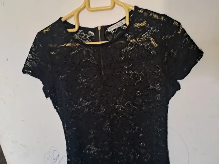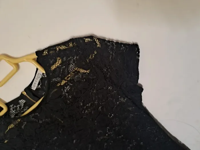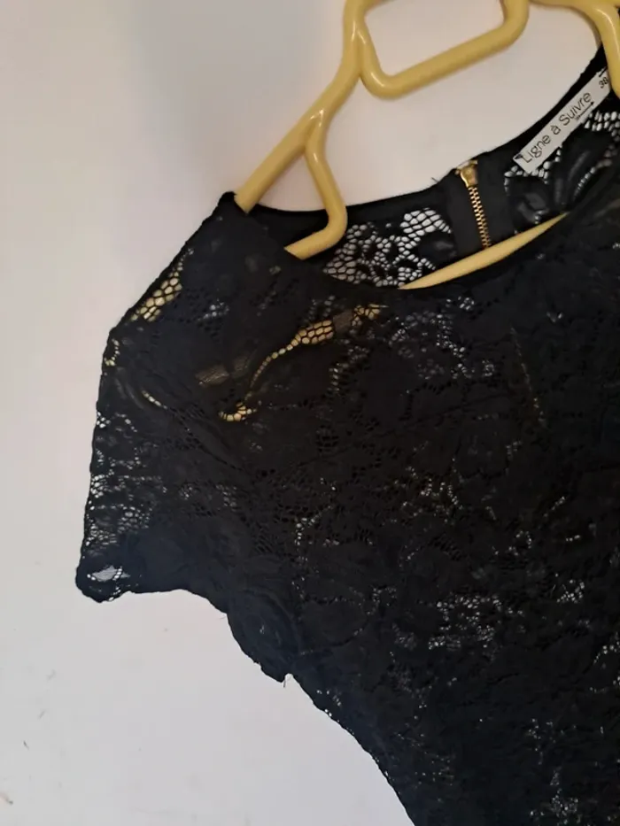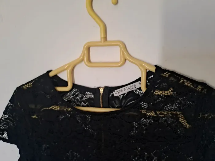Robe en dentelle transparente Couleur noir Manches courtes, col rond Fermeture éclair dans le dos Taille 38 Marque Ligne à suivre #elodie2429robe #elodie2429femmetaille38