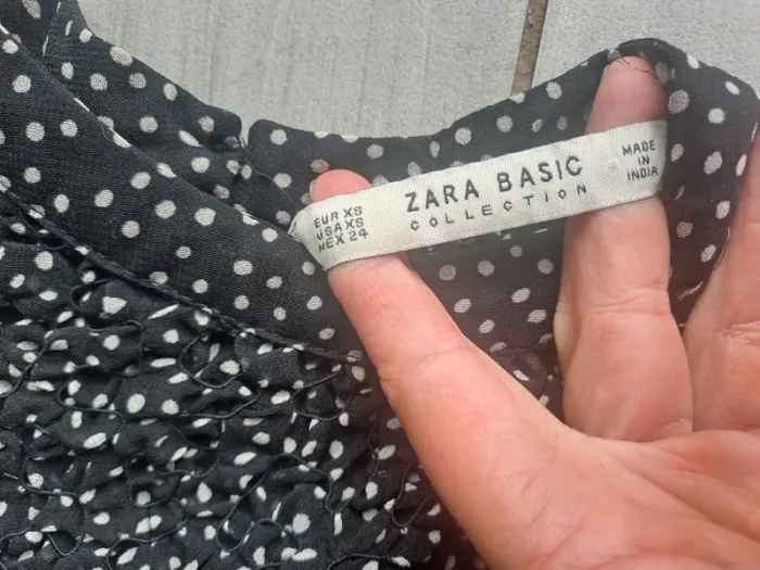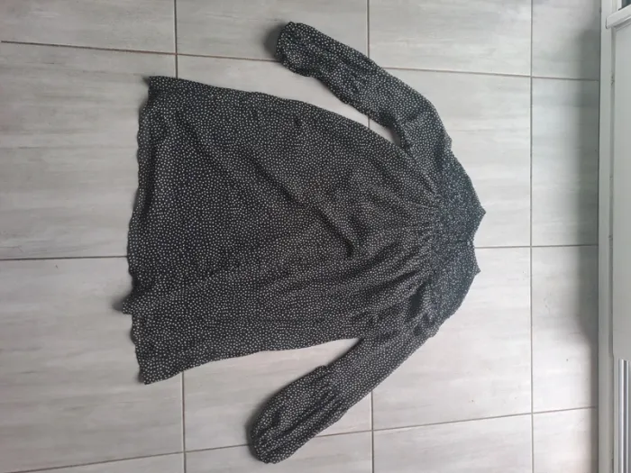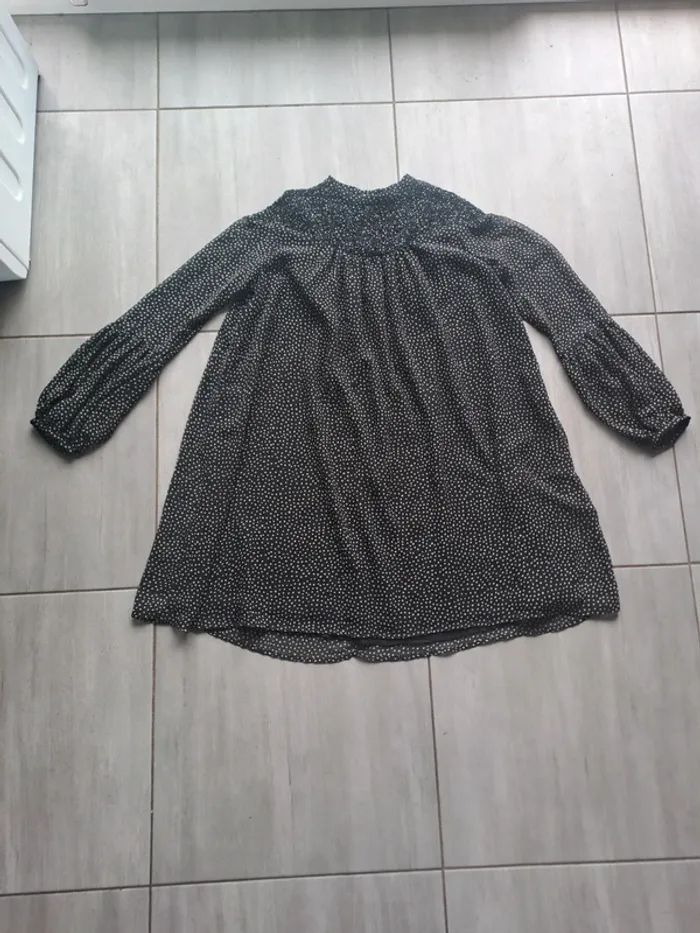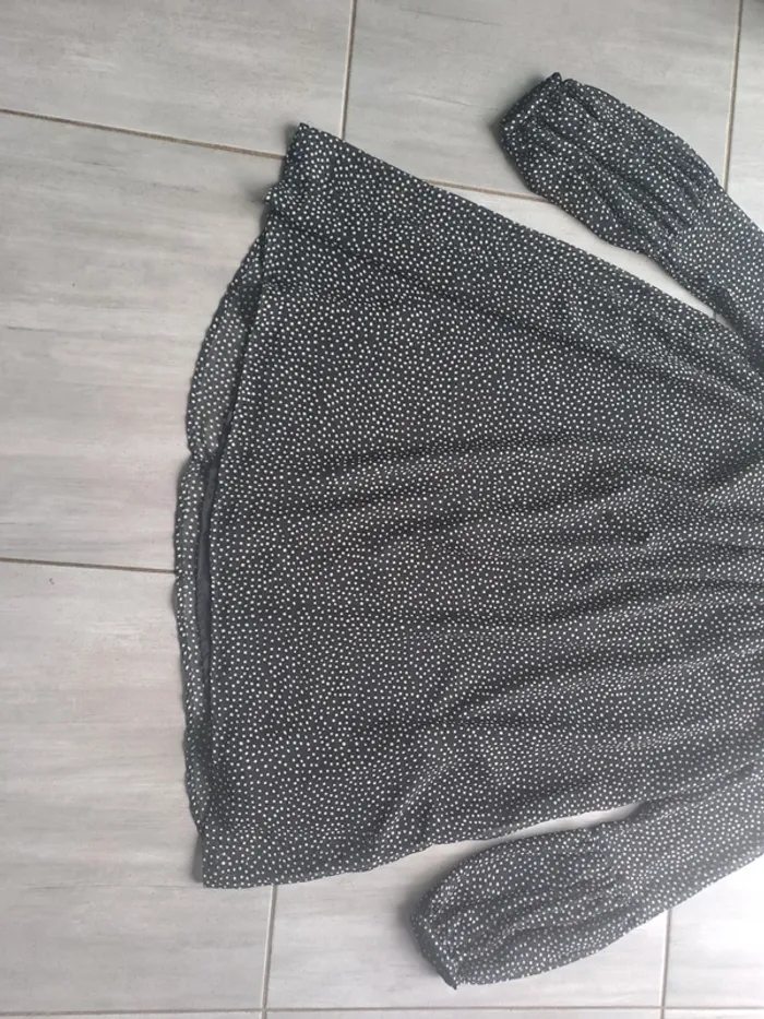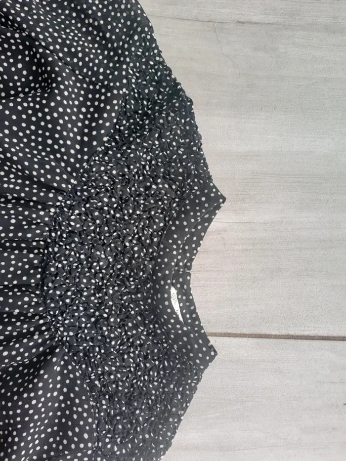 Robe courte avec doublure Manches longues Couleur Noir à petits pois blanc Taille XS (34) Marque Zara Basic #elodie2429robe #elodie2429femmetaille34 #elodie2429femmezara