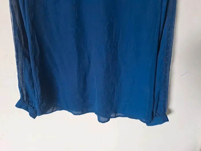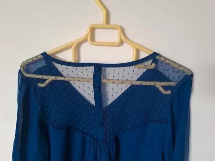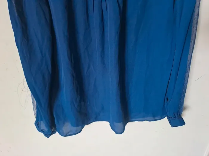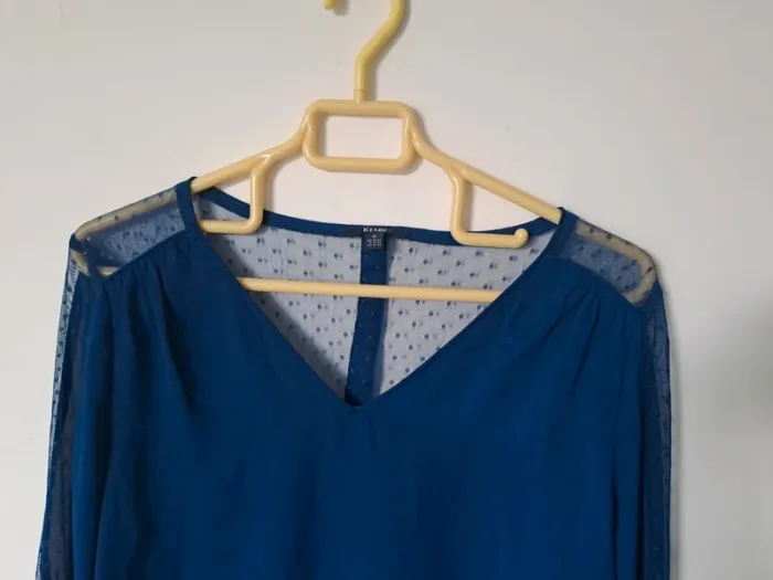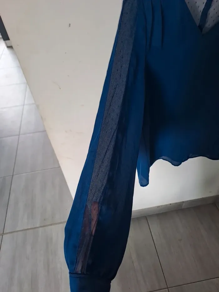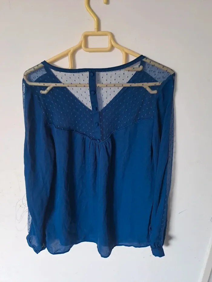 Blouse légère et fluide Manches longues Couleur bleu avec transparence sur la longueur des bras et le dos Taille M (38) Marque Kiabi #elodie2429femmehaut #elodie2429femmetaille38 #elodie2429femmekiabi