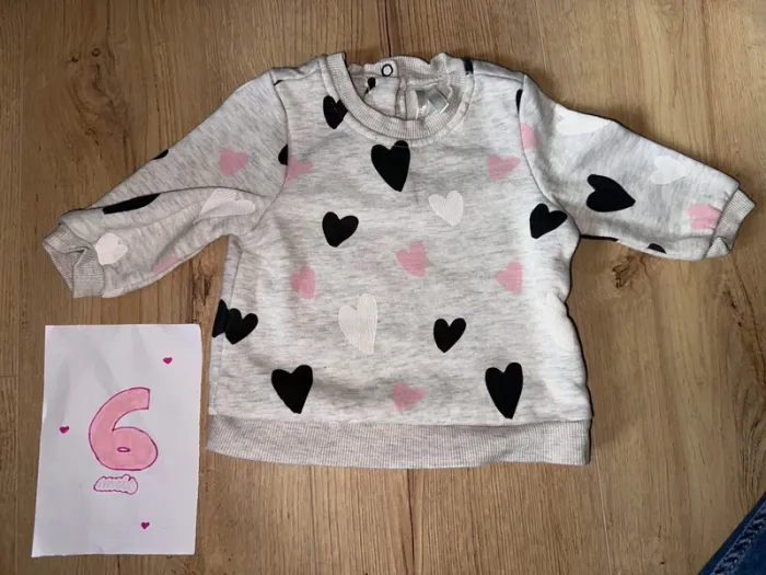 Pull chaud de la marque orchestra. Taille 6 mois. Les cœurs blancs on un peu craquelés. #lauriemimi96mois