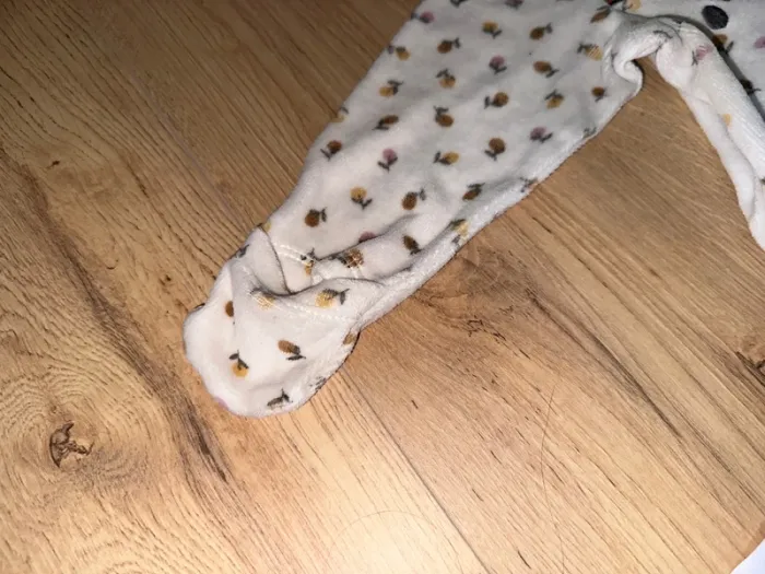 Pyjama en velours de la marque orchestra.R bout des bras à des petits gants que l’on peut mettre ou non. Taille 6 mois. #lauriemimi96mois