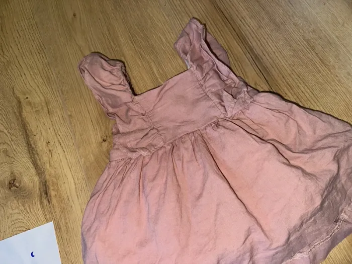Robe et bloomer en lin de la marque Mango. Porté une seule fois pendant 2h. Taille 1-3 mois (62cm) donc 3 mois plutôt. #lauriemimi93mois