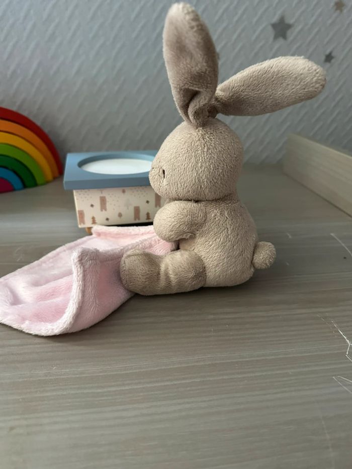 Doudou lapin beige mouchoir rose grain de blé - photo numéro 2