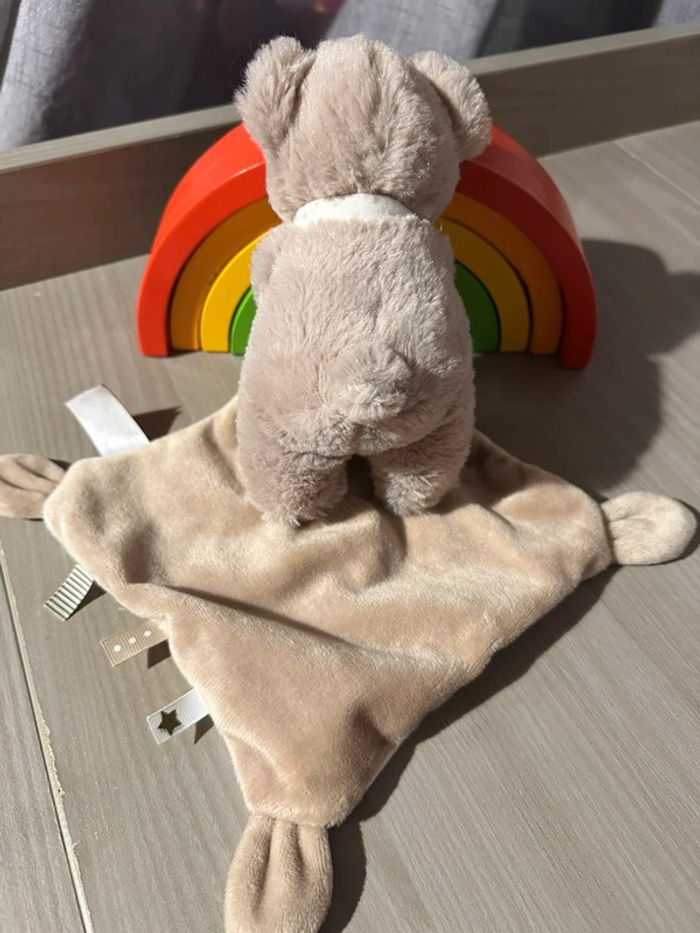 Doudou Ours marron beige mouchoir blanc étoiles Pommette - photo numéro 2