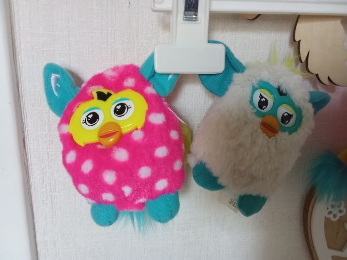 Lot de 4 mini Furby en tissu issu de chez mac Donald. Bon état général De nombreux autres peluches doudous enfant également à vendre ds mon dressing et réduction activée