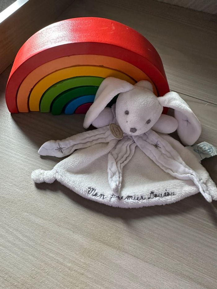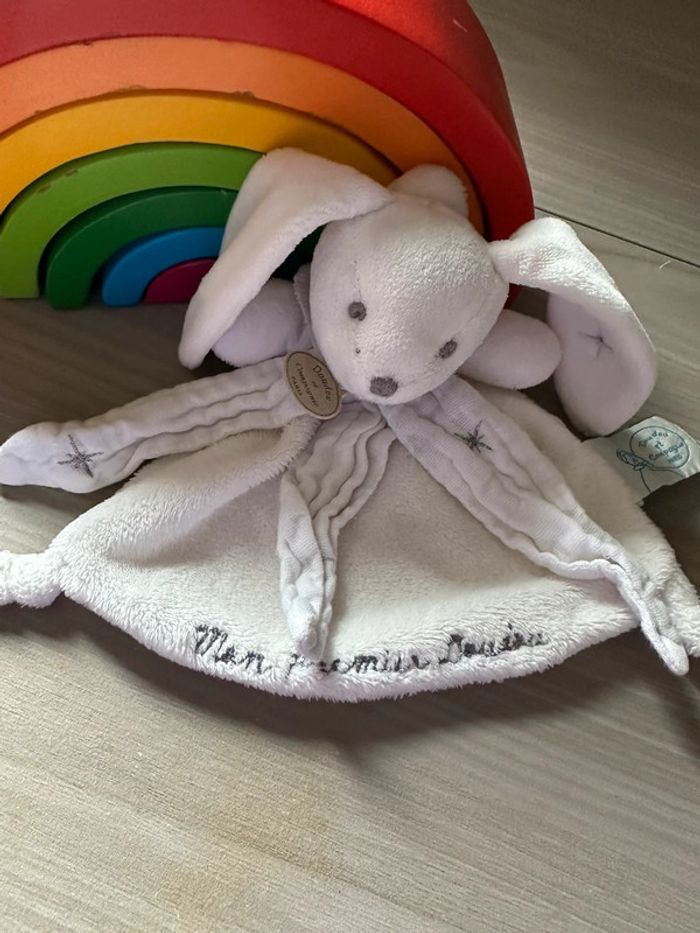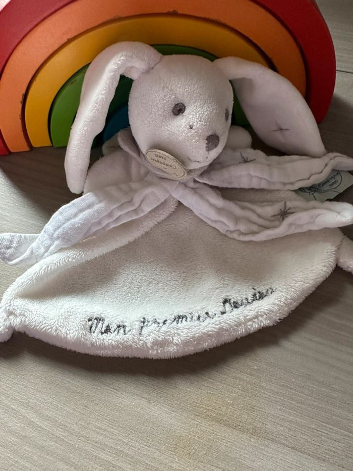 Doudou Et Compagnie Souris Plat Blanc Gris Petale Lange Etoile Mon Premier - photo numéro 1