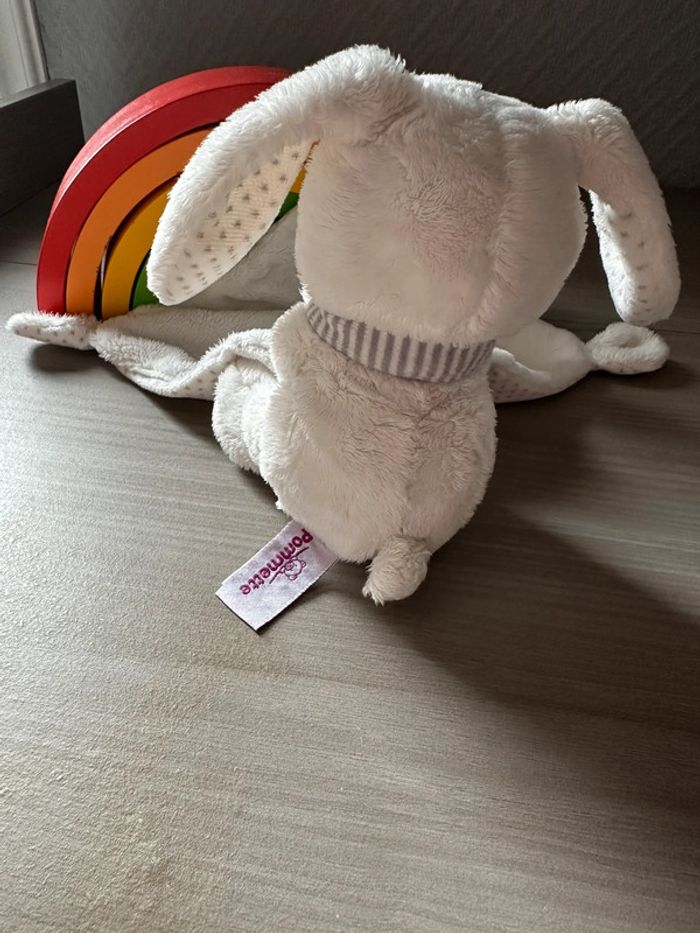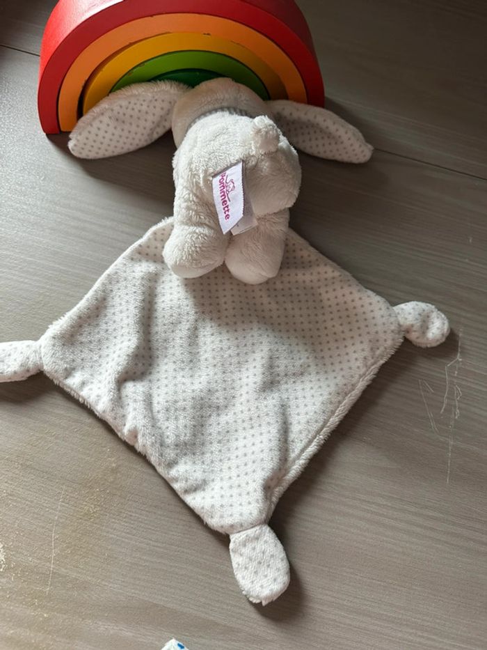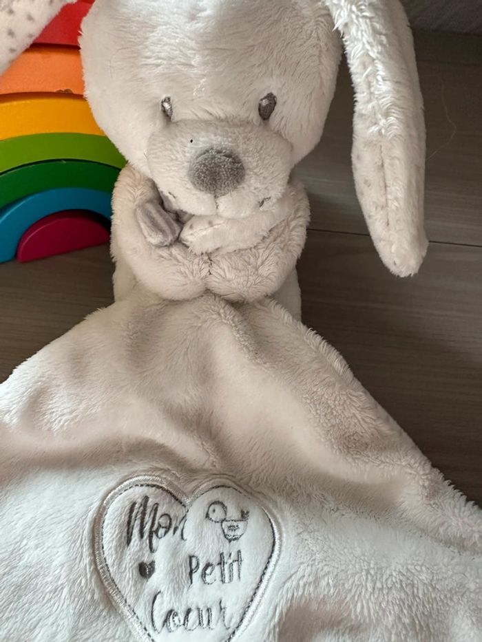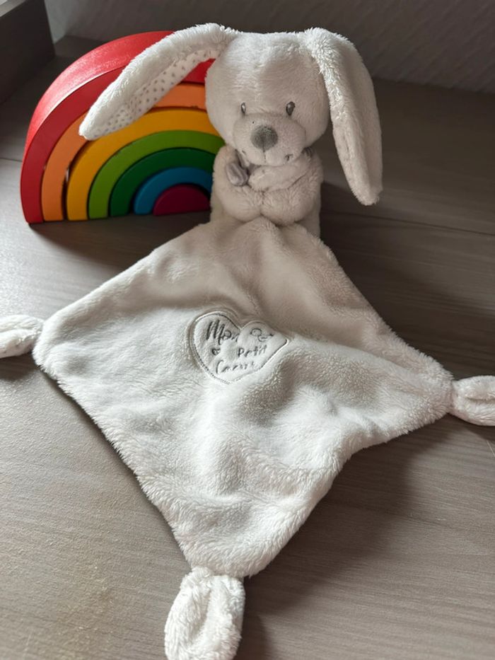 Doudou pommette lapin mouchoir blanc Mon petit coeur 30 cm