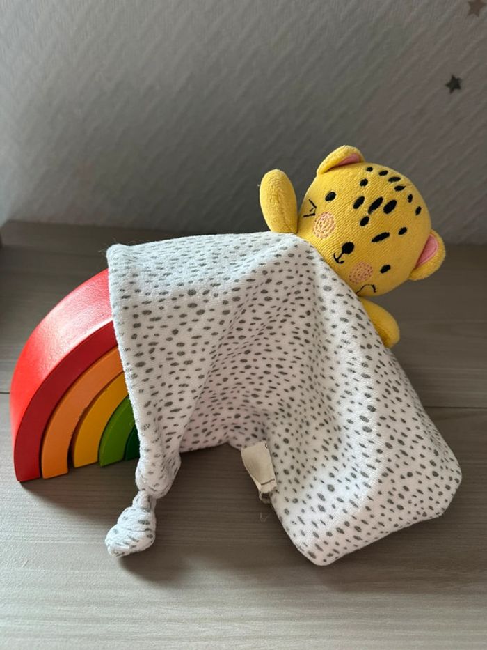 Doudou Siplec Mots D'enfants Leclerc Tigre Jaune Blanc Pois Gris