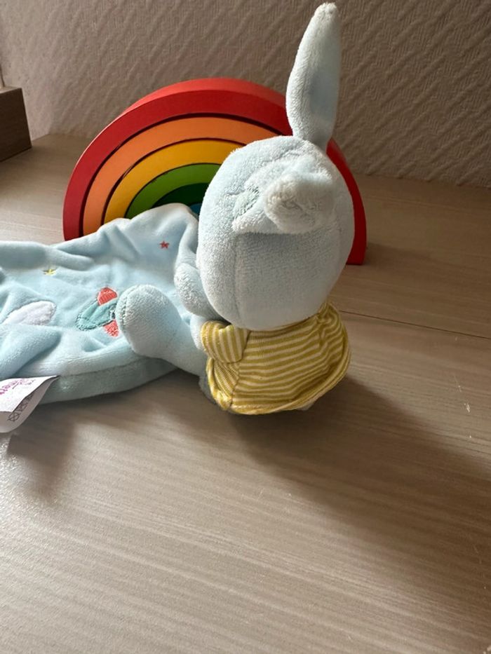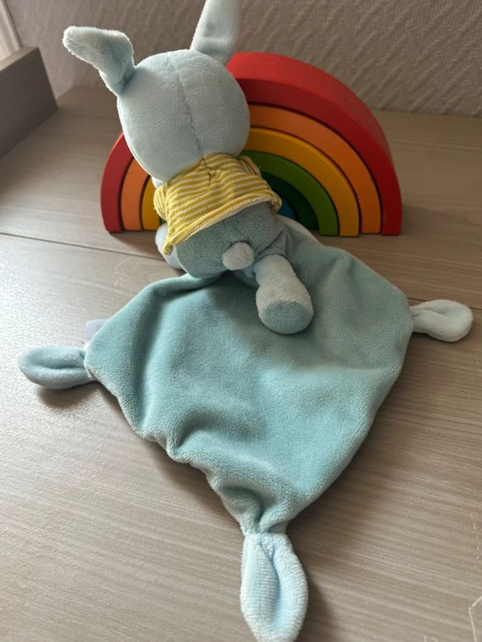Doudou lapin Pommette mouchoir bleu - photo numéro 1