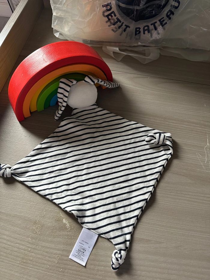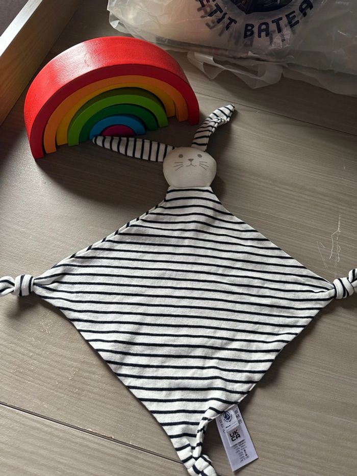Doudou Plat/Mouchoir Lapin Blanc Rayé Bleu Marine Marinière - Petit Bateau Neuf jamais servi