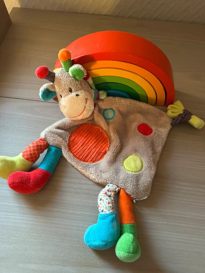 Doudou plat girafe dilbz toys nicotoy gris rond multicolore vache kiabi cheval coloré