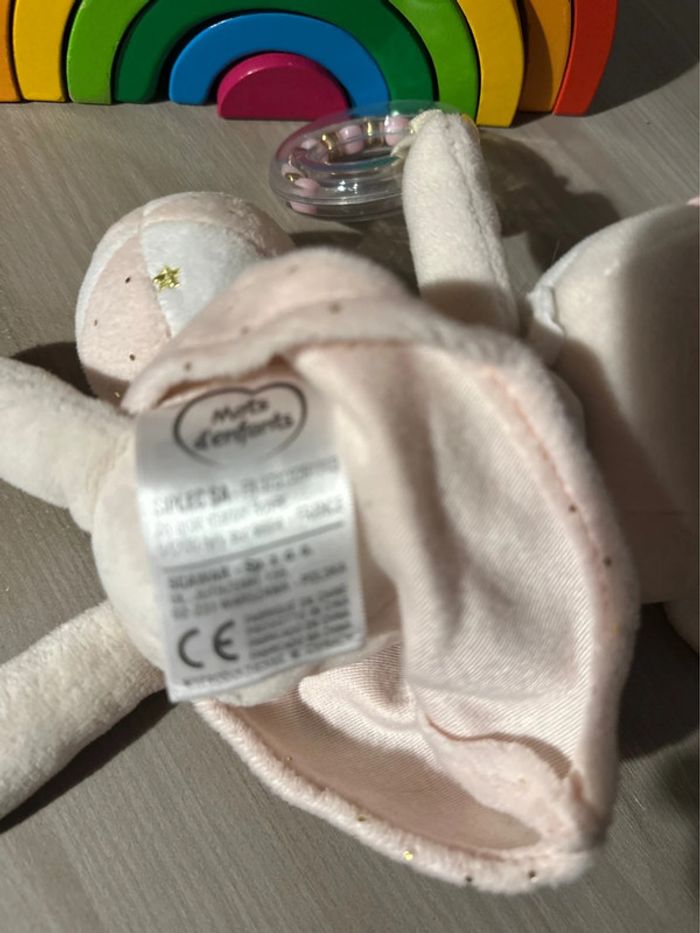 Doudou peluche Biche Rose Hochet Mots D’Enfants 25 Cm - photo numéro 2