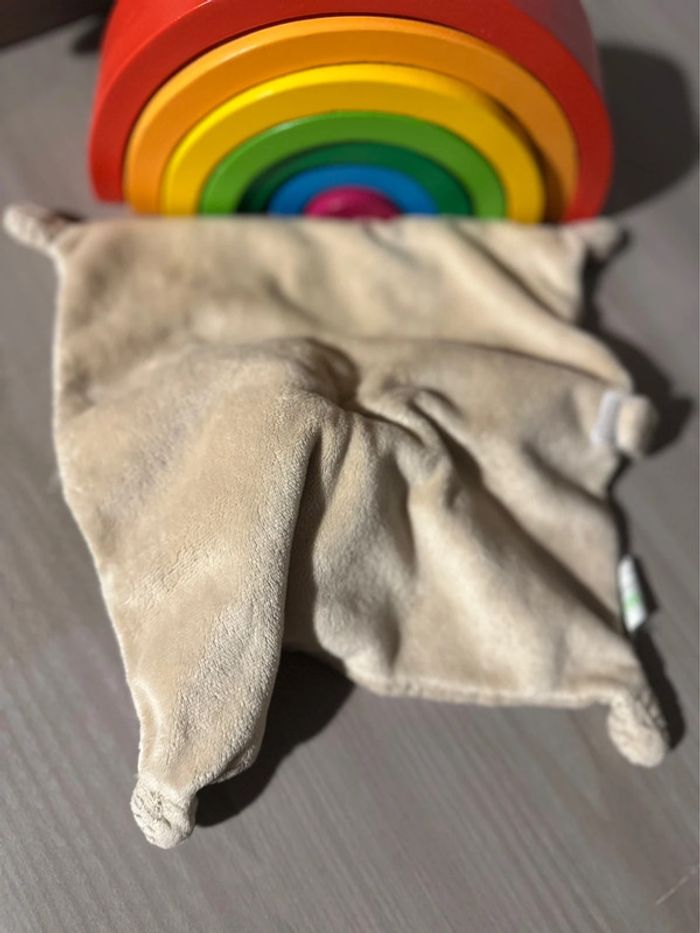 DOUDOU PLAT CARRÉ NICOTOY LAPIN MARRON ABC COEUR RAYÉ TÉTINE