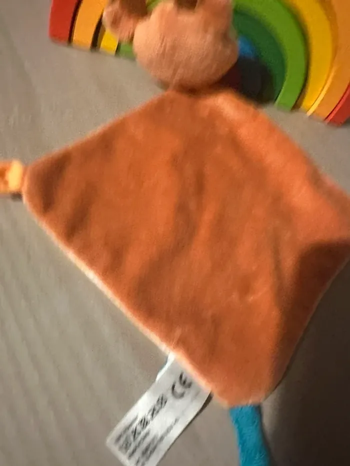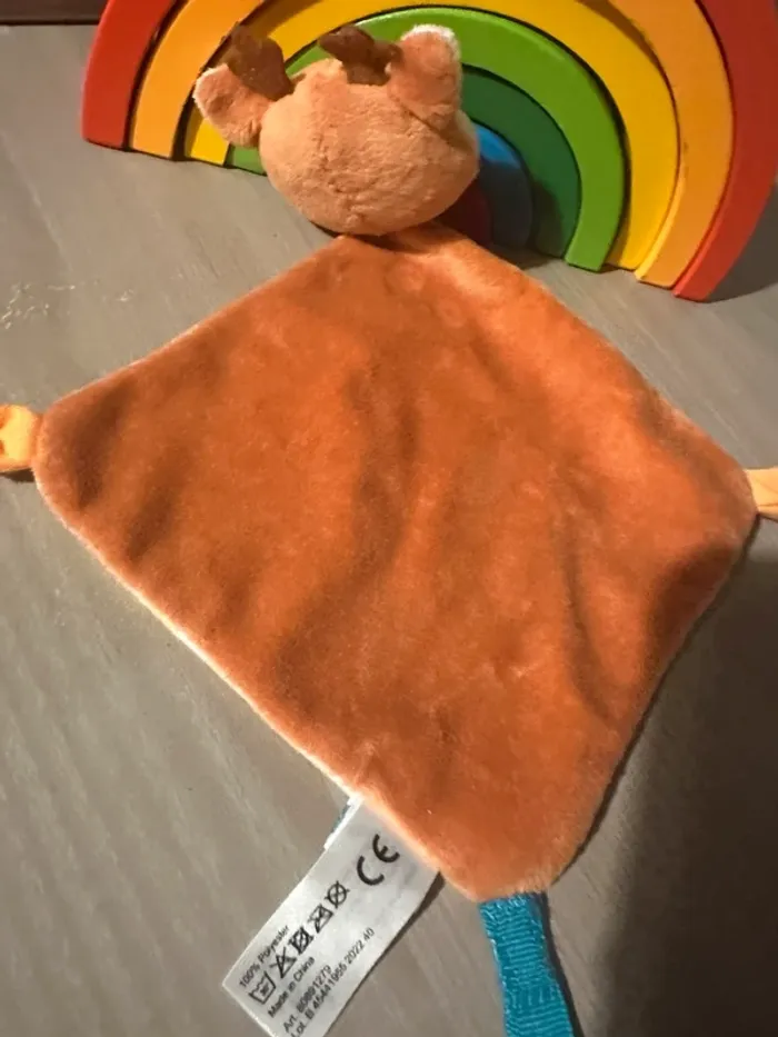 😍😍😍😍😍 Doudou plat RENNE BICHE velours marron blanc et tissu fantaisie Lien attache tétine à scratch