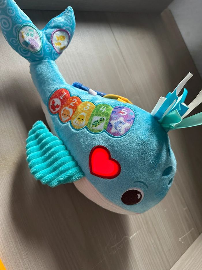Peluche Baleine musicale "Océane, ma baleine musicale" de Vtech Comme Neuf, propre rarement manipulé Taille: 30cm de long 💰Vendu 34.99€ en magasin ✅️ Électronique Preuve à l'appui en vidéo de sa fonctionnalité ❌️ Vendu sans les piles