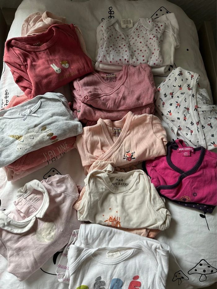 Lot 22 bodies (9kiabi / 3 gemo /3 tape a l’oeil/1 obaibi/2 pikouic/2 absorba/2 mots d’enfants /1bebe reve )taille 3 mois