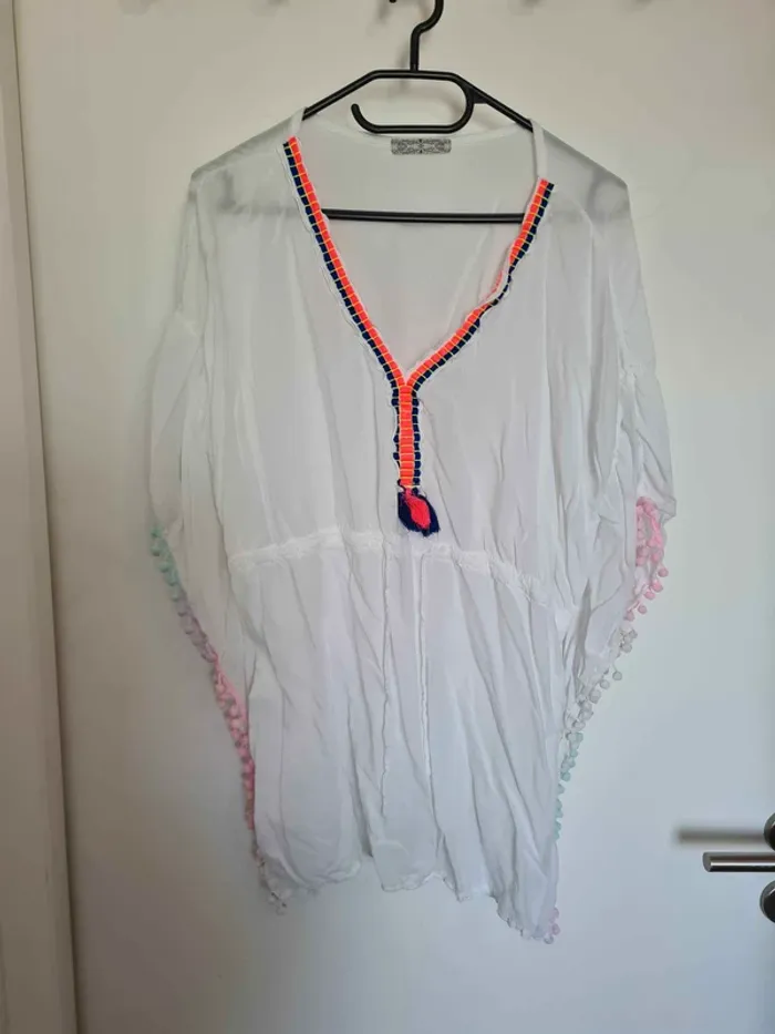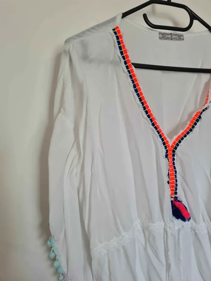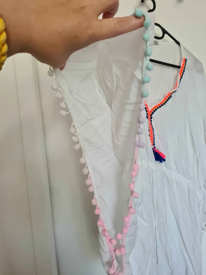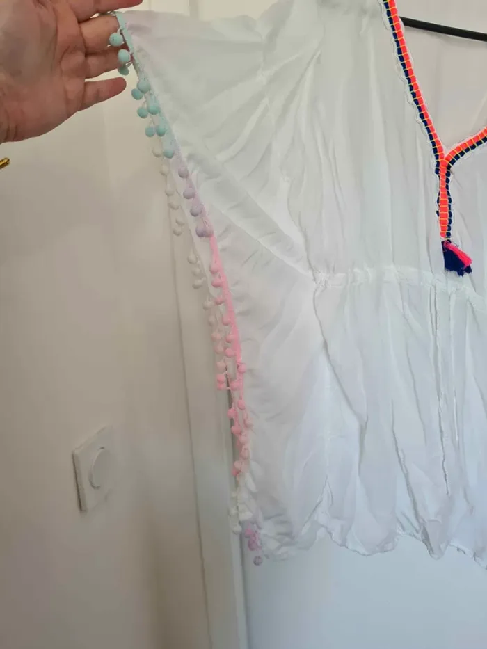 Blouse blanche transparente avec ponpons coloré taille 42 - photo numéro 6