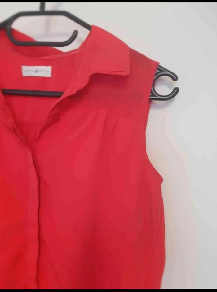 Chemisier satiné cache  cache sans  manche  rouge taille 38 - photo numéro 9