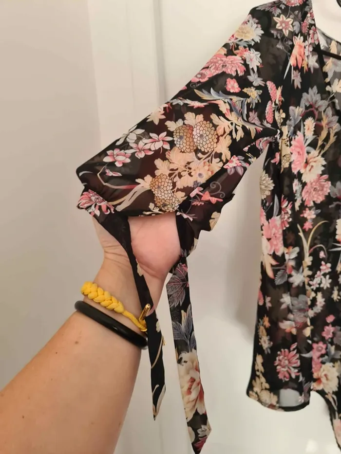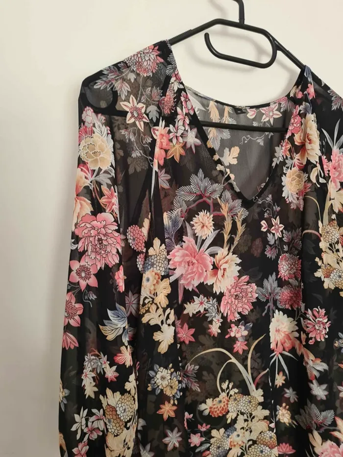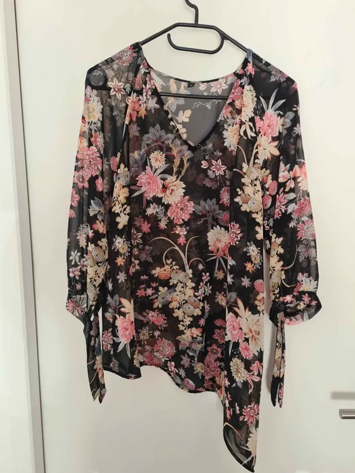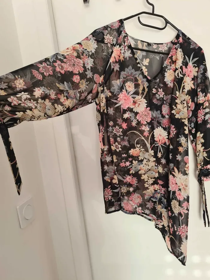 Haut asymétrique fleurie transparent taille 40