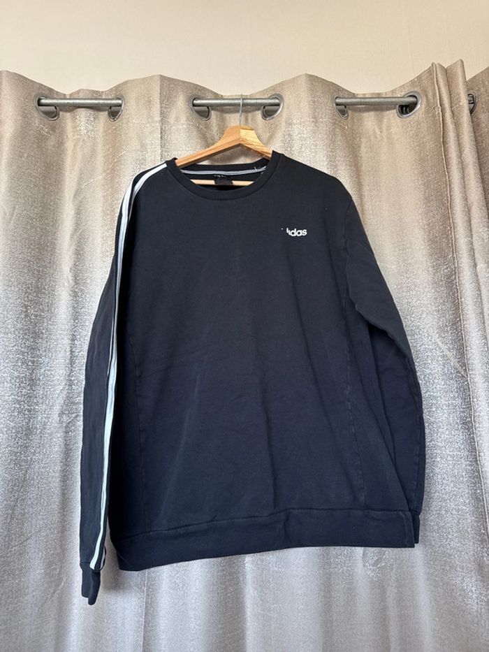 Sweat Adidas noir à bandes blanches – Taille L – Bon état - photo numéro 1