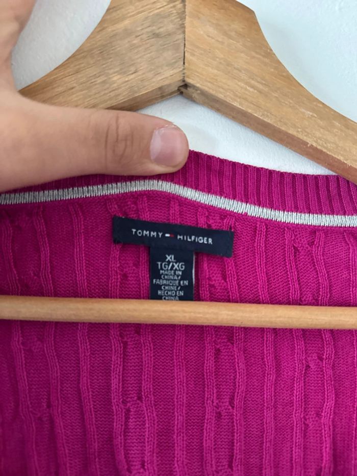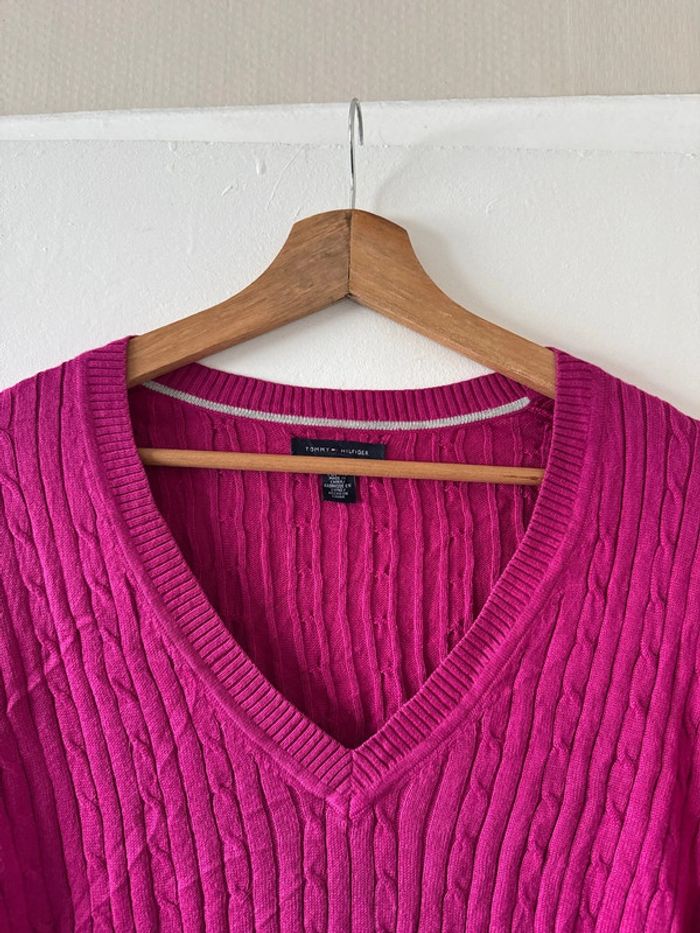 Pull col V femme Tommy Hilfiger fuchsia – Taille XL – Très bon état - photo numéro 3