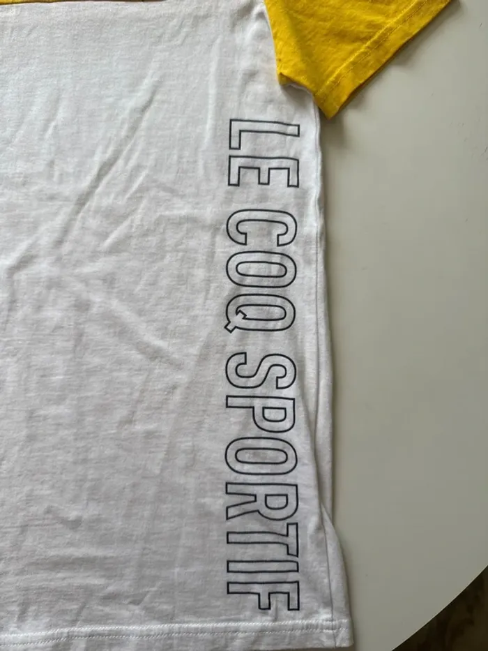 T-shirt Le Coq Sportif Jaune & Blanc – Taille XS – Neuf