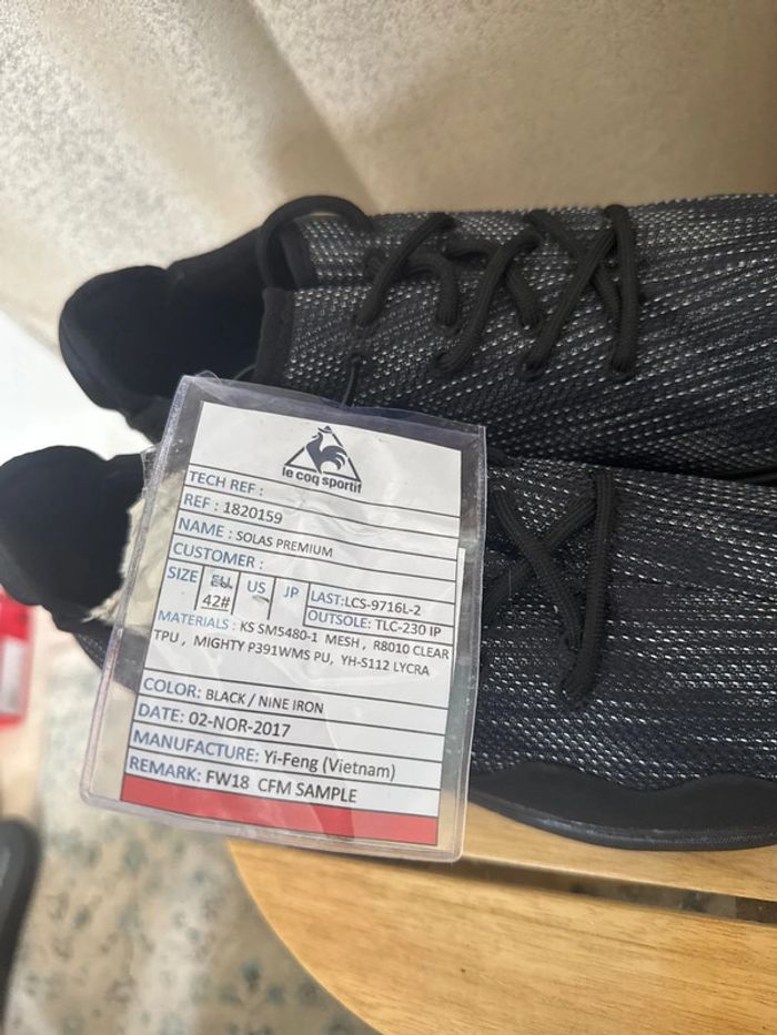 • Marque : Le Coq Sportif • Modèle : Solas Premium (FW18 – modèle sample) • Taille : 42 EU • Coloris : Noir / Nine Iron (gris foncé) • État : Neuf avec étiquette d’origine – jamais portées • Matières : Mesh respirant, lycra, PU et semelle légère TLC-230 • Fabriquées au Vietnam, série spéciale showroom (CFM SAMPLE FW18) • Design moderne, sobre et confortable • Idéales pour la marche, le quotidien ou un look sport minimaliste Modèle rare, introuvable en boutique – parfait pour amateur de sneakers Le Coq Sportif exclusives. #lecoqsportif #solaspremium #taille42 #sneakershomme #chaussuresneuves #blackshoes #basketslégères #vintedfr #sneakersrare