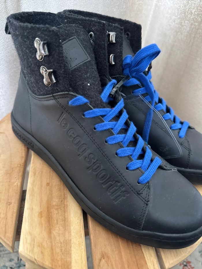 • Marque : Le Coq Sportif • Taille : 38 EU • Coloris : Noir avec lacets bleus • État : Neuf avec étiquette • Design mi-montant avec col en feutre pour un style urbain et original • Fermeture par lacets, crochets métalliques pour un bon maintien • Semelle confortable et robuste, idéale pour l’hiver ou la mi-saison Modèle rare et stylé, parfait pour affronter le froid avec style ! #lecoqsportif #bottines #chaussuresfemme #taille38 #neuf #modehiver #lookurbain #vintedfr #chaussuresmihautes