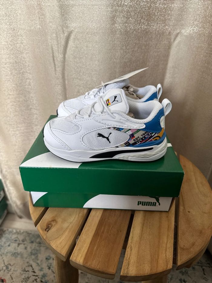 Marque : Puma • Modèle : Baskets basses blanches avec détails multicolores • Taille : 23 • État : Neuf avec étiquette, jamais portées • Semelle confortable, parfaites pour les premiers pas • Livrées dans leur boîte d’origine Idéales pour un cadeau ou équiper votre enfant avec style et confort ! #puma #bébé #basketsbébé #chaussuresbébé #pumababy #neuf #premierspas #enfant #taille23 #modebébé #vintedkids #vintedfr