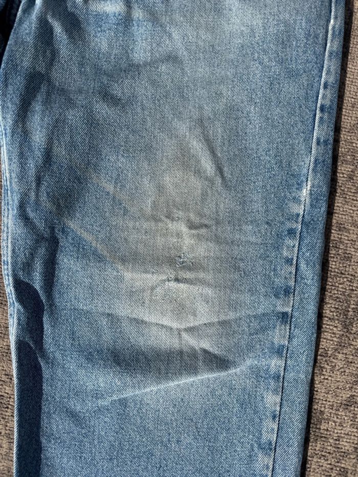 Jean authentique Calvin Klein Jeans, modèle vintage BMPP217, en denim bleu clair délavé. Style rétro des années 90 avec finitions usées volontairement et étiquette cuir CK à l’arrière. • Taille : 36 • Coupe : Droite classique • Couleur : Bleu clair délavé • Style : Rétro / vintage • État : Bon état général – usure naturelle sur les bords (effet volontaire, très tendance), voir photos • Matière : 100 % coton (étiquette visible) • Détails : Fermeture zippée, bouton siglé CK, étiquette logo à l’arrière, passants pour ceinture Un vrai basique vintage pour un look 90s ou streetwear, unisexe et stylé.