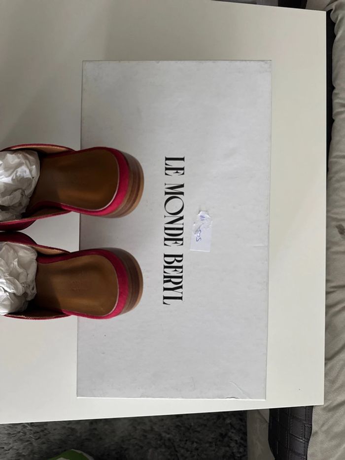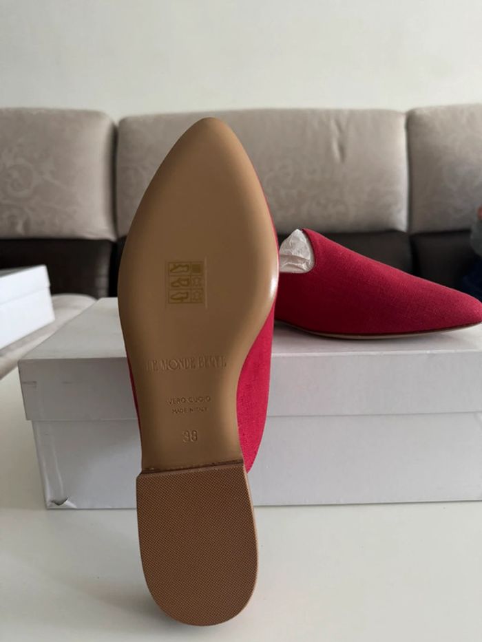 Marque : Le Monde Beryl Taille : 38 Couleur : Rouge vif avec bord blanc Matière : Intérieur cuir, extérieur textile État : Neuf, jamais portées, vendues sans étiquette, dans leur boîte d’origine Élégantes et confortables, parfaites pour le printemps-été ! Style chic et féminin, idéal pour les tenues décontractées ou habillées. Valeur boutique : + de 150€ Envoi rapide et soigné depuis la France
