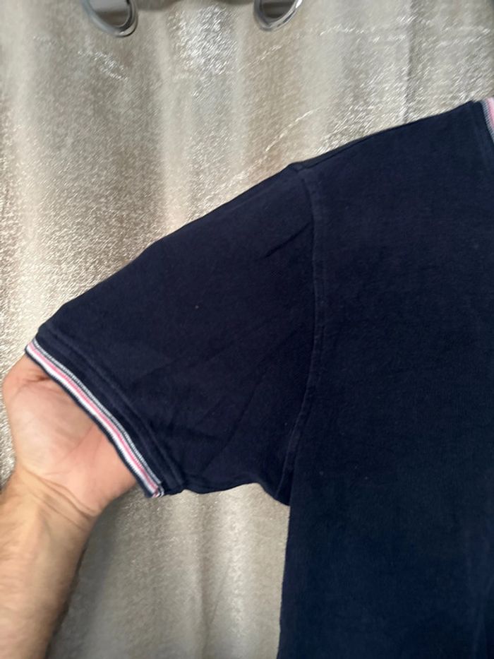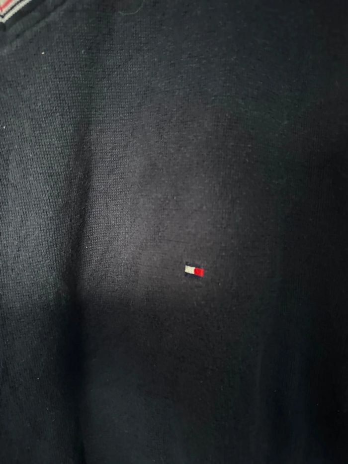 T-shirt épais ou pull léger à manches courtes de la marque Tommy Hilfiger, en très bon état. Coloris bleu marine avec col en V et bords côtelés avec liseré blanc et rouge. Logo discret brodé sur la poitrine. Modèle homme, taille L, coupe classique. État : Très bon état (aucun défaut visible) Taille : L Genre : Homme Marque : Tommy Hilfiger Pièce de qualité, idéale pour un look décontracté et stylé. Envoi rapide et soigné !