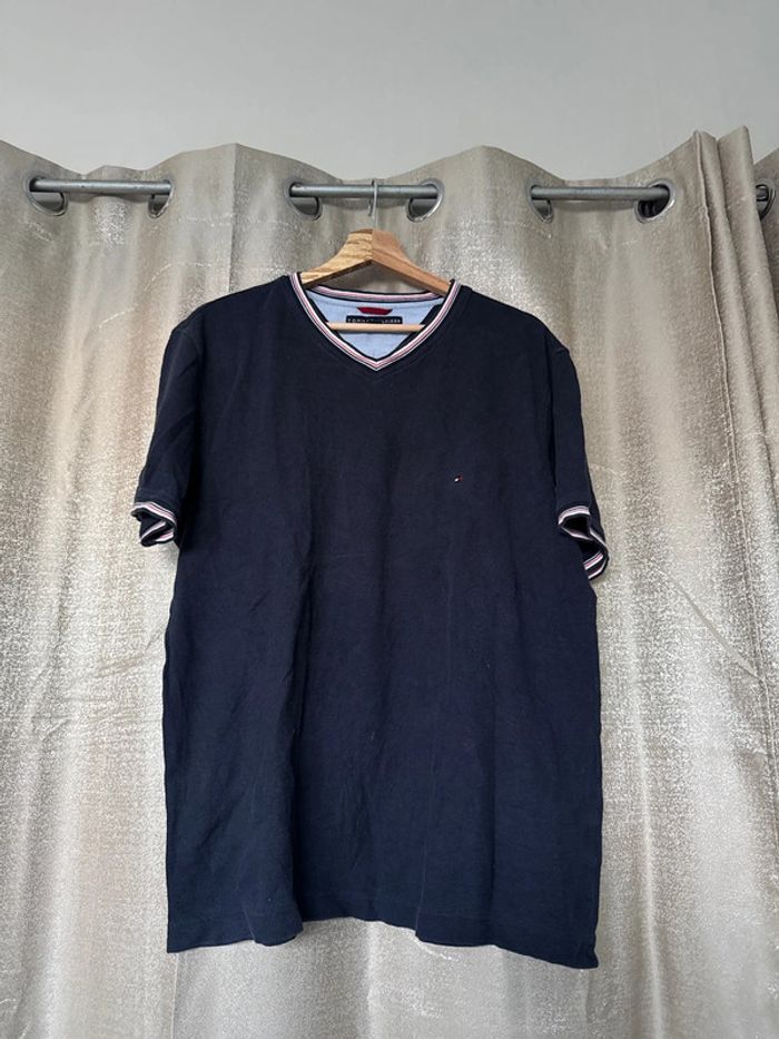 T-shirt épais Tommy Hilfiger à col V – Taille L – Très bon état - photo numéro 1