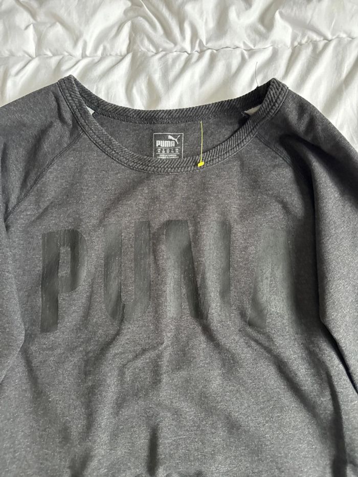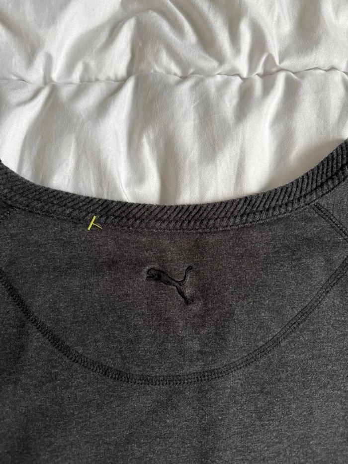 Sweat-shirt pour femme de la marque Puma, en coloris gris foncé (anthracite), avec logo “PUMA” en ton sur ton sur l’avant. Coupe décontractée, col rond, matière douce et confortable. Taille M (FR 38). Fabriqué au Cambodge. Parfait pour un look casual ou sportif, à porter au quotidien ou après une séance de sport. État : Très bon état, aucun trou ni tache, très peu porté. Genre : Femme Taille : M / 38 État : Très bon état #Puma #SweatFemme #Streetwear #PumaSweat #LookDécontracté #ModeFemme #VintedFrance #Sportwear