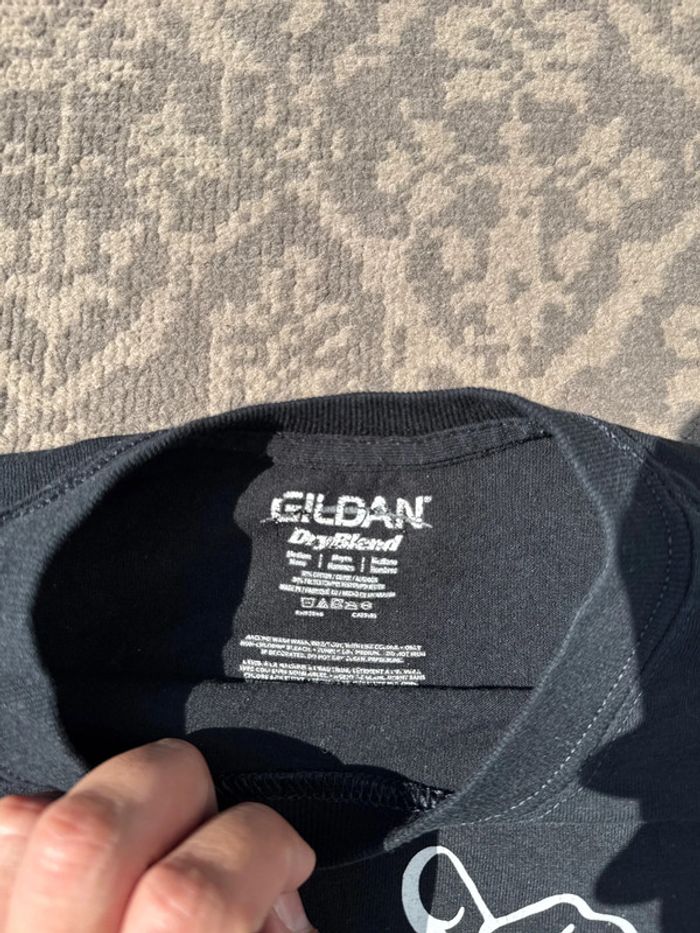 T-shirt noir de la marque Gildan (modèle DryBlend), taille M .Imprimé humoristique “This Guy Loves His Truck” à l’avant et logo “DP” sur la manche. Coupe droite, col rond, matière confortable et respirante. À noter : petite déchirure sous l’aisselle (voir photo), mais encore parfaitement portable ou réparable. Idéal pour les fans de camions ou pour un style décontracté ! État : Bon état (avec défaut visible) Taille : M Genre : Homme Envoi rapide et soigné. #tshirt #Gildan #humour #truck #DP #noir #tailleL #casual #streetwear #homme