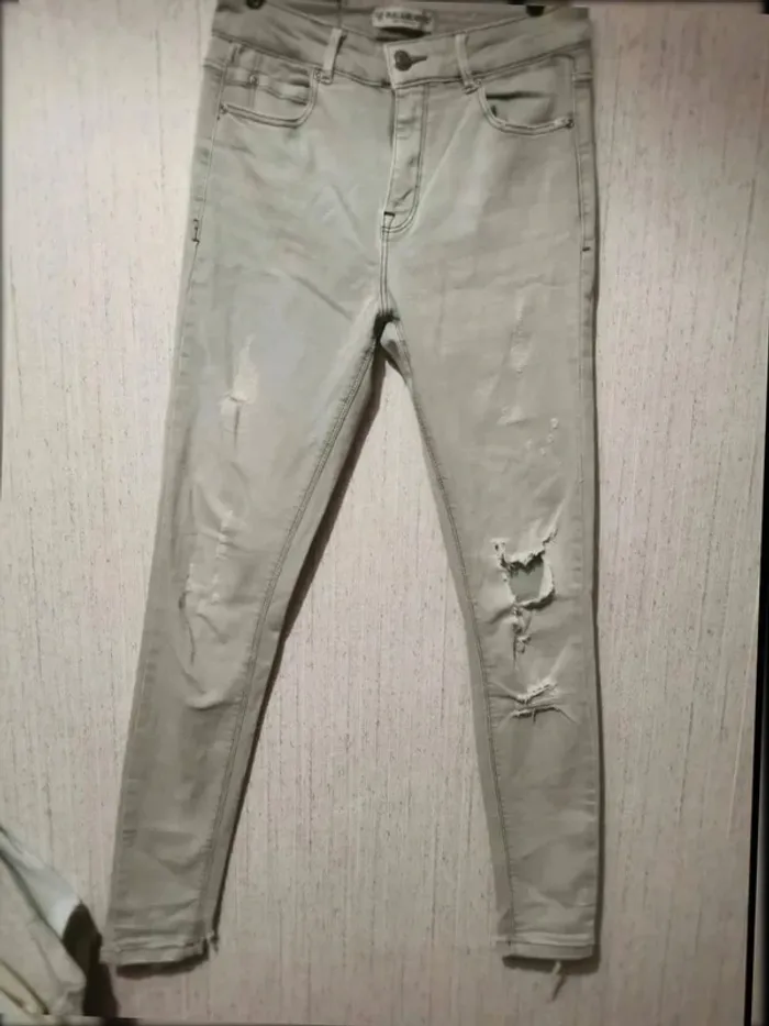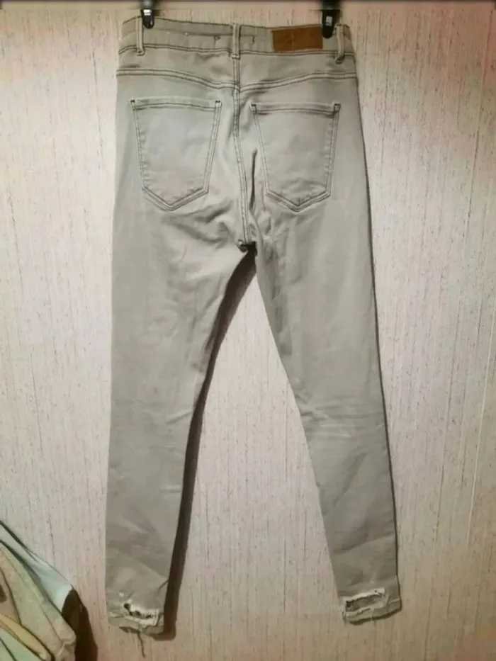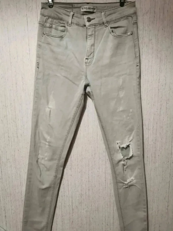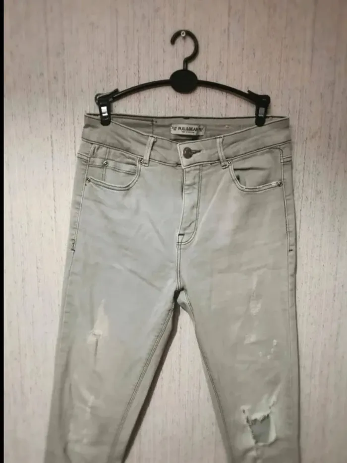 Jean troué effet usé en taille 36 de couleur gris un peu kaki léger de la marque Pull&Bear très joli #cyndie102116femme36 #cyndie102116femmeS