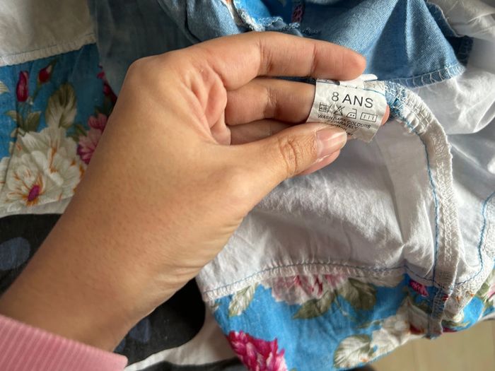 Porte mais très bon état Effet décoloré sur la partie jeans Motifs à fleurs #evok83fille8ans Je vends des articles pour toute la famille, n’hésitez pas à regarder mon dressing ! Abonnez vous à mon compte, je mets souvent des nouveautés !