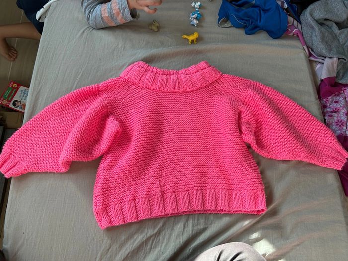 Pull en laine rose fait main 4 ans avec bouton hello kitty - photo numéro 1