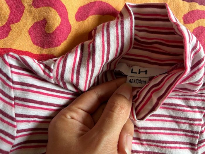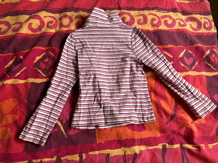 Tee shirt manches longues col roulé rayé rose violet et blanc la halle 4 ans