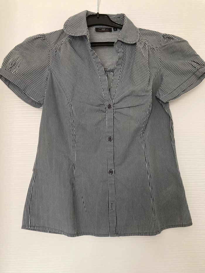 Chemise rayée bleu marine / blanc new look taille 40 - photo numéro 2