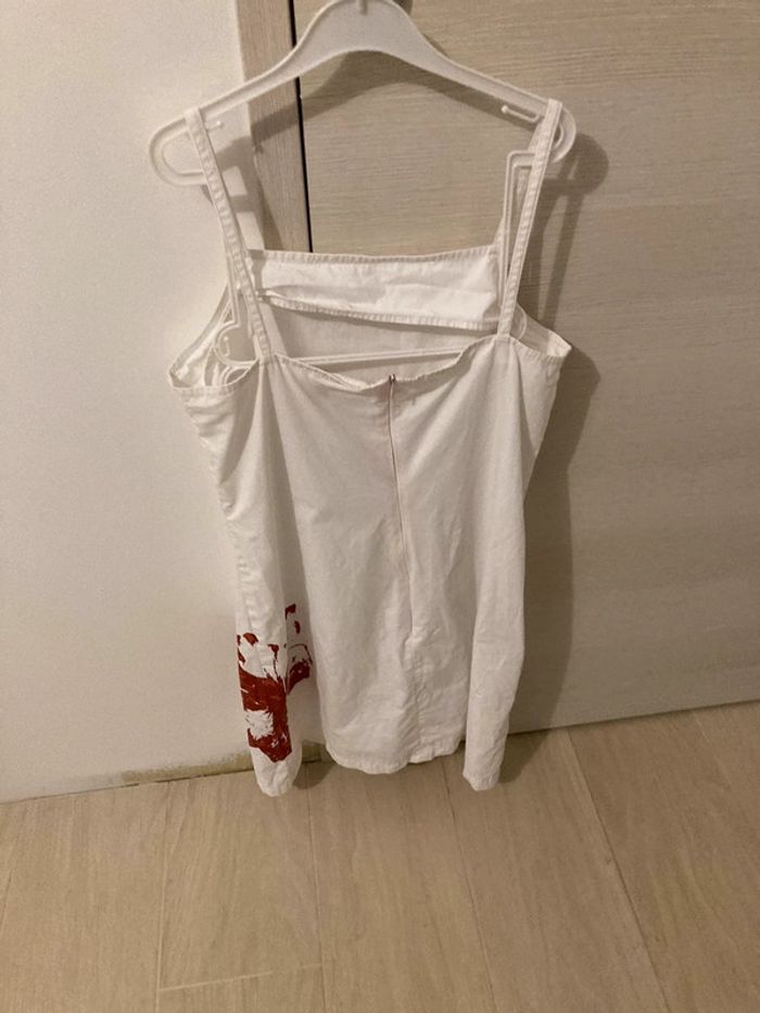 robe blanche avec coutures rose et une grosse fleure rouge sur le côté gauche #evok83femme regardez mes autres annonces, + 200 articles en vente ! abonnez vous à mon compte, je mets des nouveautés toutes les semaines !