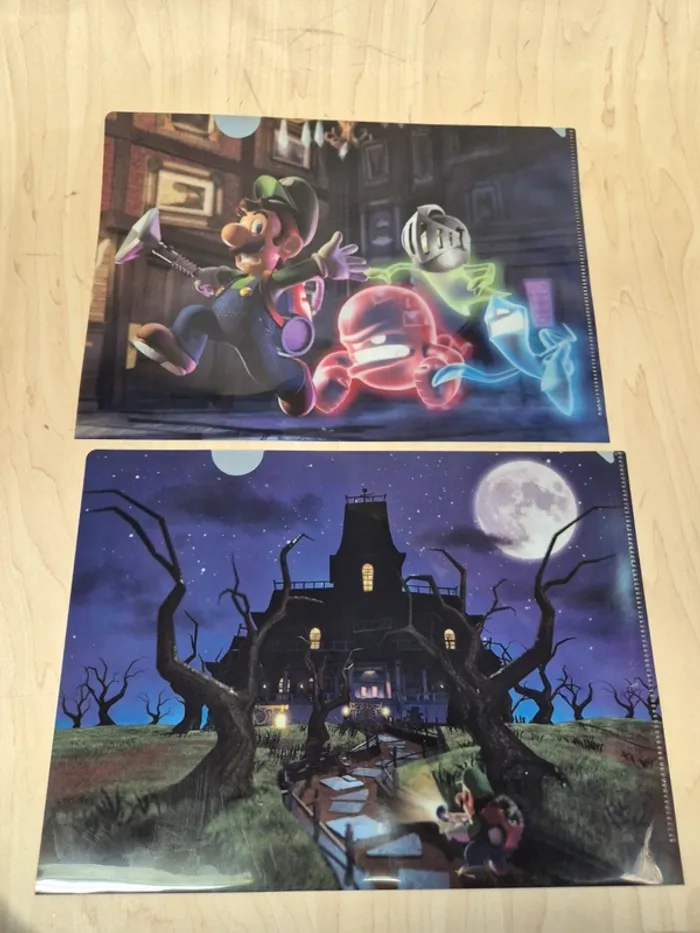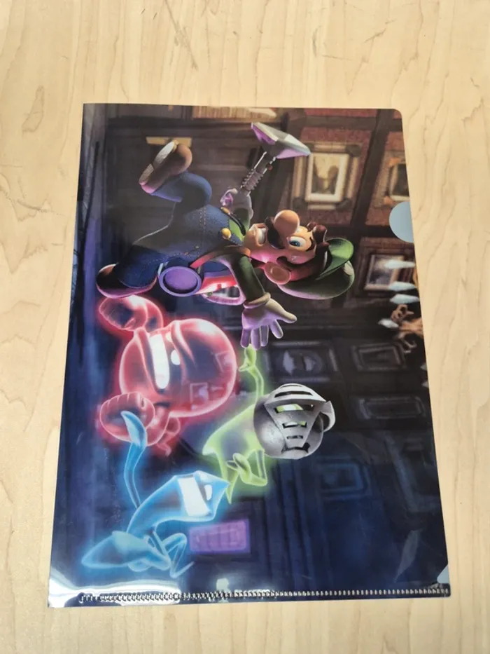 Set 2 pochettes à coin Luigi's mansion 2 × Family Mart. Plastique souple, environ 31 x 22 cm. Idéale pour ranger feuilles et documents au format A4. En excellent état, juste un petit accroc sur la 2eme pochette (voir photo) #chpokemon