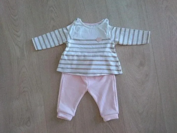 Ensemble fille sweat marinière et pantalon rose Obaïbi 6 mois - photo numéro 1