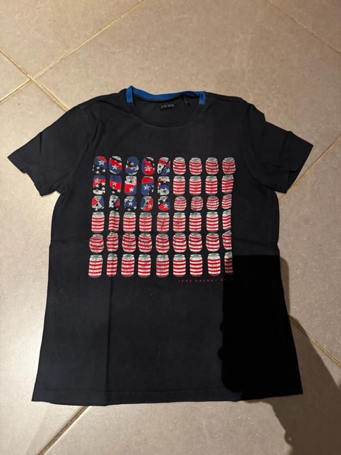T shirt manches courtes - Ikks - Canette formant le drapeau américain / USA - Bleu marine - 8 ans